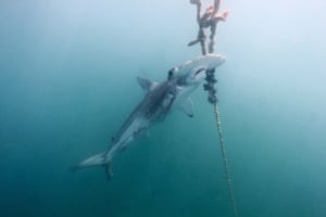 FacebookTwitterPinterest Um tubarão-martelo recortado, listado como ameaçado de extinção, morto em uma linha de bateria na Magnetic Island, Austrália. Foto: HSI / EPA